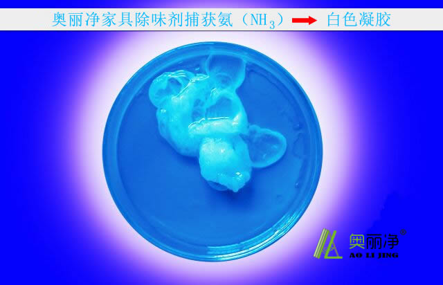 室溫狀態(tài)下奧麗凈家具除味劑中的高分子化合物與氨類(lèi)化合物發(fā)生交聯(lián)反應(yīng),形成的凝膠性質(zhì)穩(wěn)定,土壤中可降解,符合環(huán)保標(biāo)準(zhǔn)。